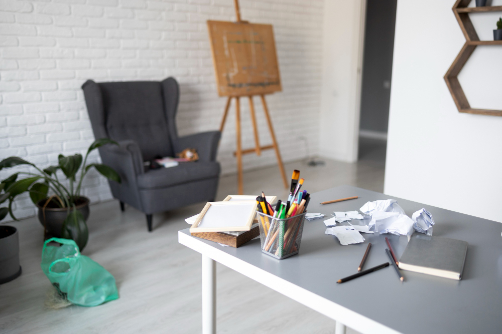 Accesoriile trebuie alese cu grijă. Un suport pentru pixuri, o plantă mică sau un organizer minimalist sunt suficiente. Evită obiectele care încarcă vizual sau care nu au un rol clar.